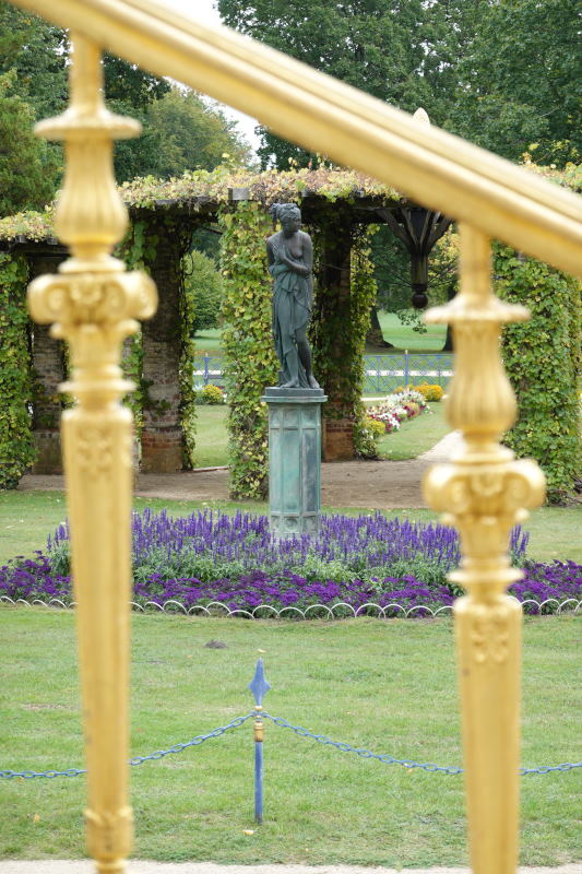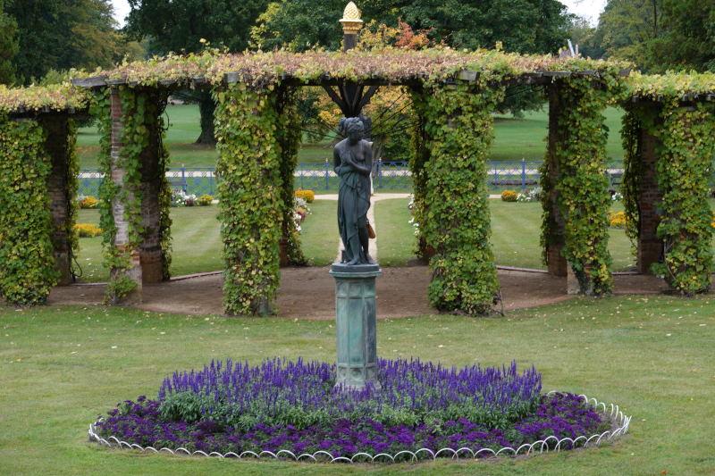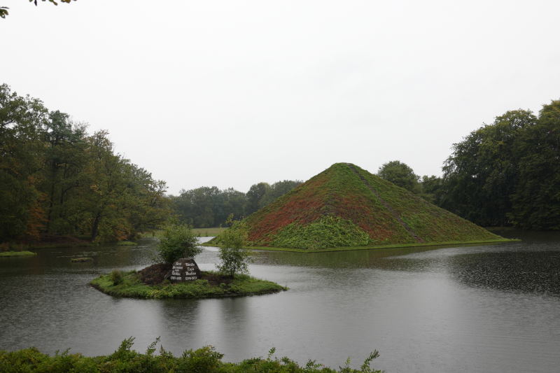 In Branitz musste Fürst von Pückler, nun ohne Muskau, in kleineren Dimensionen denken. Das hielt ihn aber nicht davon ab auch hier Berge zu versetzen. Er baute eine Landpyramide und eine im künstlich aufgestauten See, seine letzte Ruhestätte. Trotz Dauerregens zieht mich die wohl sortierte Gartenlandschaft in ihren Bann und so wandle ich verträumt und gut beschirmt auf den ausgeklügelt angelegten Wegen. Einen aufschlussreichen Einblick in die feudale Wohnwelt des Fürsten bekomme ich dann im Museum des Schlosses. Das freundliche Personal lässt durch ein paar überlieferte Anekdoten aus dem Leben des Fürsten, die damalige Zeit lebendig werden. Wer sich eingehender mit dem schillernden Aristokraten beschäftigen will, siehe meine Empfehlung unter Literaturtipps.
