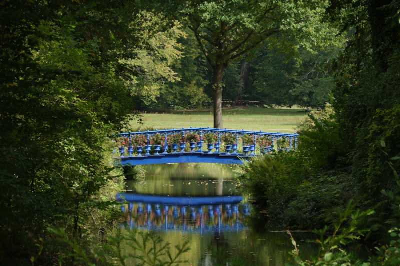 Inspiriert durch eine Englandreise und von Goethe ermuntert begann der Fürst ab 1815 seine künstlerischen Landschaftspläne rund um das Schloss in Bad Muskau zu realisieren. Gewaltige Erdmassen wurden bewegt, jede Menge Bäume gepflanzt, Wasserläufe, Wege und Blickachsen angelegt. Dass der Park 2004 zum UNESCO-Welterbe gekürt wurde, zeigt, wie weitsichtig er dabei agierte. Einige der alten Baumriesen könnten wohl spannende und aufschlussreiche Geschichten aus dieser Zeit berichten, würden wir sie nur verstehen. Angeregt durch die sehenswerte Dauerausstellung im Schloss: „Pückler! Pückler? Einfach nicht zu fassen!“ begeben wir uns mit dem Fahrrad und ein wenig Fantasie auf eine spannende Zeitreise durch den Park. Eintauchen in eine Welt und ein Leben, die mir heute märchenhaft erscheinen. Eintauchen in die frühe Morgendämmerung der Moderne. Grenzübergreifend, mit ganz unterschiedlichem Charakter, zeigt sich das circa 830 Hektar große Areal diesseits und jenseits der Neiße. Es würde dem offenen Weltmann wohl gut gefallen, dass sein Park heute als ein Symbol der deutsch-polnischen Freundschaft gilt. Seine angespannten finanziellen Verhältnisse zwangen 1845 den verschwenderischen Lebemann die Herrschaft Muskau zu verkaufen und in das etwas bescheidenere Erbschloss in Branitz umsiedeln.